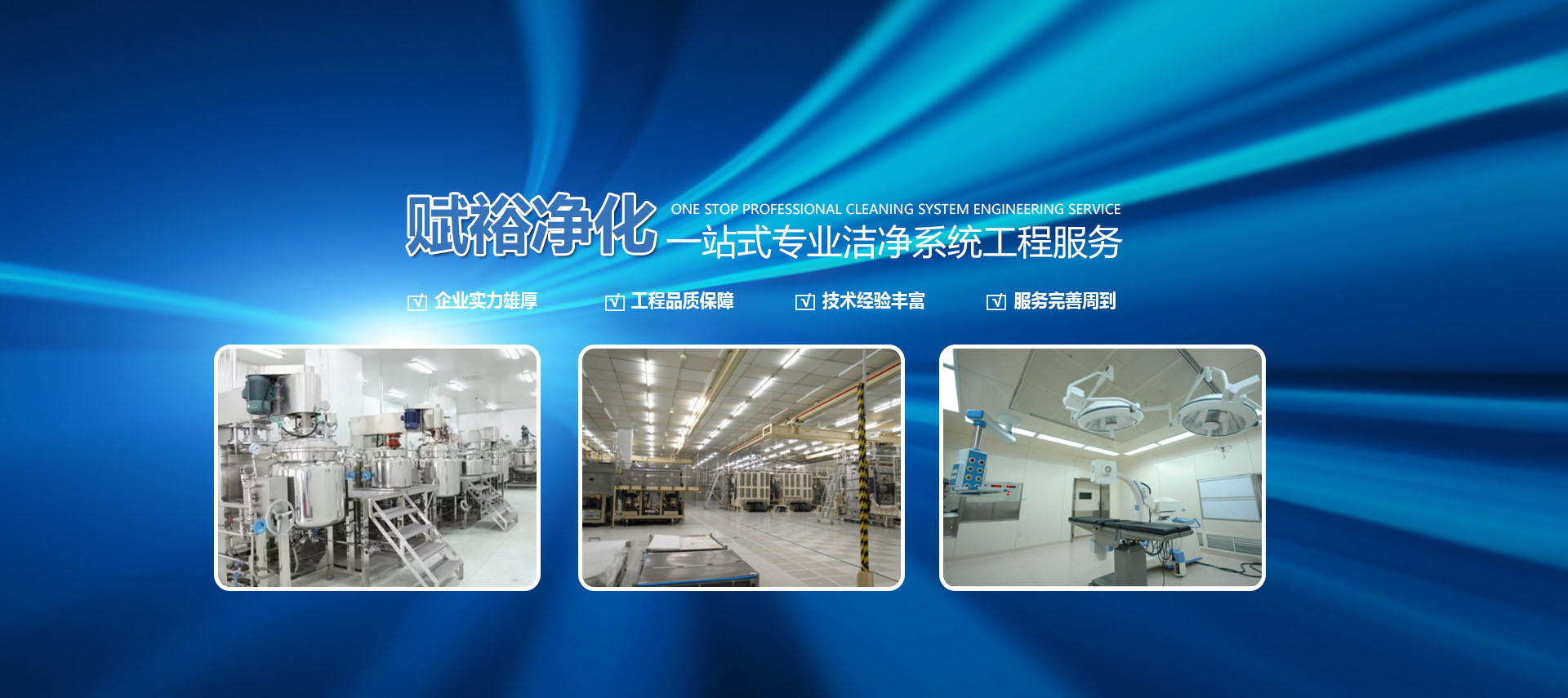 苏州赋裕净化科技公司作为专业从事洁净技术研究设计、制造、安装、检测的高新科技企业公司,技术力量雄厚,生产和测试设备精良。凭借十几年的专业经验,在全国各地的制药医疗、电子无尘、生物安全无菌实验、食品卫生、生物生化、精细化工、半导体、集成电路、微电子、光磁技术、精密机械、仪器仪表、航空航天、汽车制造、科研教育等高新科技产业的领域中,设计承建了各种不同类型的净化空调厂房工程和各类生物洁净无菌操作实验室。提供了满足和GMP规范、FS209E联邦标准和ISO/TC209国际标准要求的厂房系统工程的设计、制造、安装、调试、检测等综合性成套服务,并配套制作系列高效空气过滤器、风淋室、医用净化工作台、医用洁净层流罩、高效过滤送风口、空气自净器、不锈钢洁净门窗、实验室(P2\P3)、实验台等净化产品。承揽净化专用设备的配套及机电系统设备的安装,且用有各类不同芯材要求的机制防火彩钢板、手工防火彩钢板自动生产流水线。产品质量和服务态度赢得了用户的广泛好评。